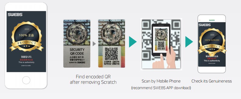 ・SWEBSは、暗号化されたQRが融合されたホログラムラベルを利用して、消費者は安心して購入できる正品認証システムを提供