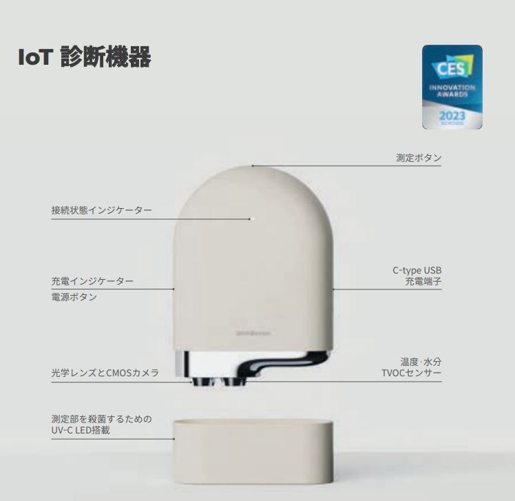 光学レンズとCMOSカメラ, 温度, ⽔分, TVOCセンサー, UV-C LED搭載