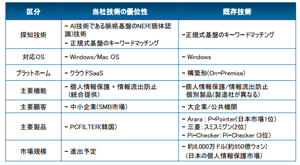 〇サービス:PC内に存在する固有識別情報などの個人情報や敏感な情報を安全に管理および保護する様々な機能による重要な情報の外部流出防止及びPCセキュリティ安全性の診断及び措置を提供